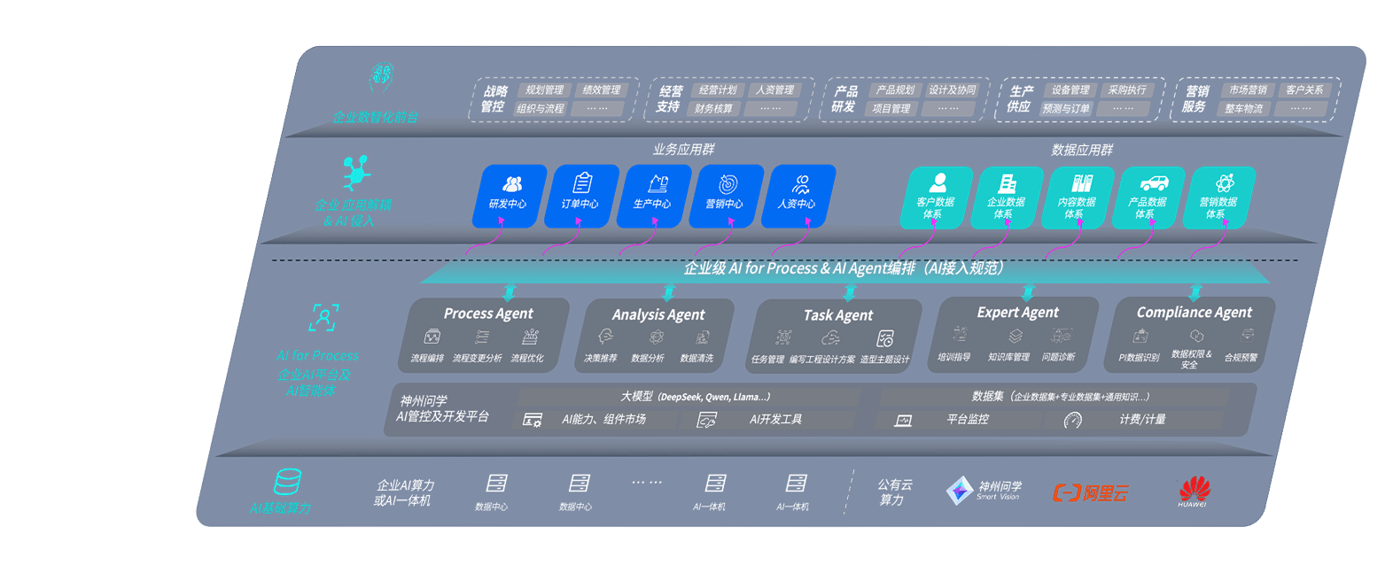 云海游戏问学智车解决方案是一套基于AI技术的汽车行业智能化系统,,,覆盖从底层算力到顶层AI应用的全栈方案。。。方案由算力层、、、、模型层和应用层组成:算力层,,方案支持多种一体机配置,,,,具备云端灵活部署、、多云适配以及动态优化计算资源的能力;模型层,,云海游戏问学平台版提供了企业级AI应用一站式构建与管理平台,,,,支持基于后训练强化技术的汽车企业专属模型的训练、、、、评测和运营;应用层,,,,云海游戏问学DeepSeek版提供包括超级员工、、智能招采、、智能营销、、智能客服、、、AI for BI等一系列解决方案,,,,可助力汽车行业实现数字化转型,,让管理更智能、、、响应更敏捷。。