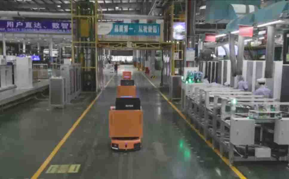为车载冰箱物流配送打造的智能解决方案,,,,包含产中物流通过潜伏举升AMR搬运至线边,,,,产后成品物流智能仓储,,,流程包含产中物流智能齐套入库,,,,线边安灯叫料AMR智能配送至线边,,,成品入库、、、出库,,,,通过无人堆高车机器人,,智能仓储管理替代人工作业管理,,,实现更高存储、、、、更高效率、、、、更具柔性化的解决方案。。。